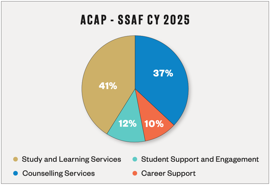 Services provided through the SSAF funding are made available to all ACAP students, and it is up to each individual student to choose their level of engagement with these services and activities.